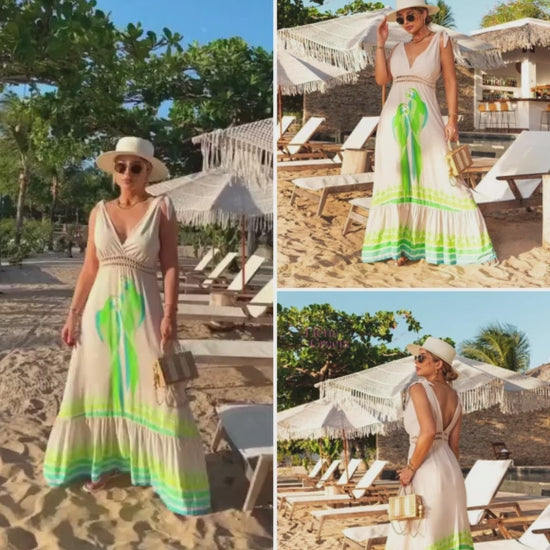 Si vas a un día de playa, piscinada o una ocasión veraniega nuestro Vestido Mara, elaborado en viscosa y pintado por artesanos brasileños en acrílico, te hará vivir el momento al máximo, sintiendo la suavidad y frescura de su tela, además no se transparenta y (incluye hermosos detalles en crochet).