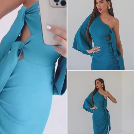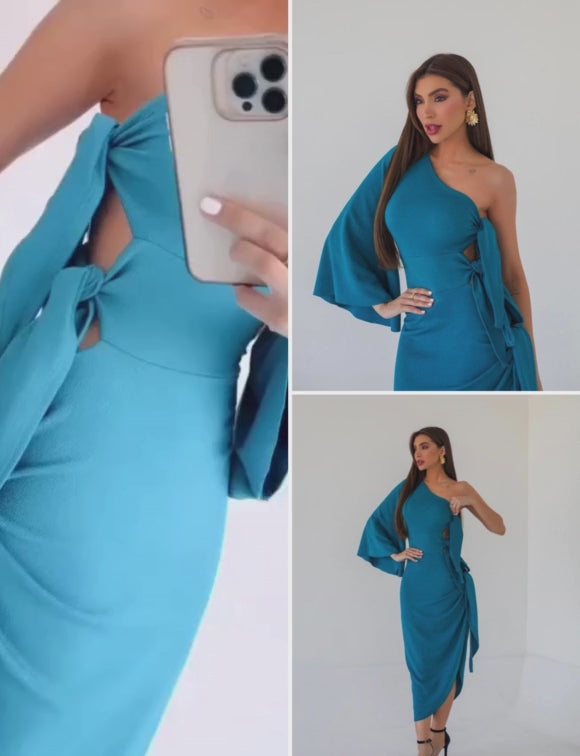 Su diseño de un solo hombro añade un toque de glamour y modernidad, mientras que los detalles en la cintura realzan tu silueta.